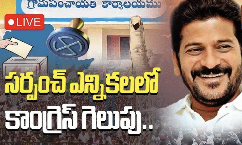 రాష్ట్ర వ్యాప్తంగా జరిగిన సర్పంచ్ ఎన్నికల్లో కాంగ్రెస్ పార్టీ ప్రభంజనాన్ని స్రుష్టించింది. ఏకంగా మూడో వంతు స్థానాలను ఆ పార్టీ కైవసం చేసుకుంది. బీజేపీ, బీఆర్ఎస్ పార్టీలు కలిసినా ముప్పై శాతానికి మించకపోవడం విశేషం. కాంగ్రెస్ పార్టీ 7000 కు పైగా సర్పంచ్ స్థానాలు దక్కాయి. ఇండిపెండెంటులు గా మరో 1500 మంది సర్పంచ్ లు గెలిచారు. వీరిలో 70 శాతం కాంగ్రెస్ చు చెందిన వారే కావడం విశేషం. వీరితో కలిపితే కాంగ్రెస్ 8000 సర్పంచ్ లు గెలిచినట్లు అవుతుంది. బీఆర్ఎస్ పార్టీకి 3500 , బీజేపీకి 688 సర్పంచ్ స్థానాలు వచ్చాయి. ఒకటి రెండు జిల్లాలో మినహా అన్ని జిల్లాల్లో కాంగ్రెస్ ఆధిక్యాన్ని పొందింది.