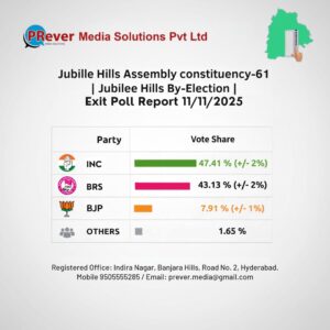 జూబ్లీహిల్స్ ఉప ఎన్నికల్లో విజయం కాంగ్రెస్ పార్టీదేనని అన్ని అంచనాలు స్పష్టం చేస్తున్నాయి. పోలింగ్ ముగిసిన తర్వాత అనే సర్వే సంస్థలు తమ అంచనాలను ప్రకటించాయి. మంచి మెజారిటీతో కాంగ్రెస్ అభ్యర్థి నవీన్ యాదవ్ విజయం సాధిస్తున్నట్లు ఎగ్జిట్ పోల్స్ చెపుతున్నాయి. బీఆర్ఎస్ రెండో స్థానంలో ఉండగా , బీజేపీ కి డిపాజిట్ రాకపోవచ్చునని అంచనాలు స్పష్టం చేస్తున్నాయి.
