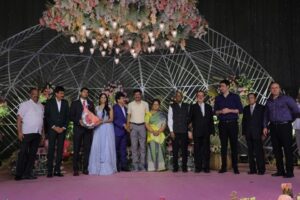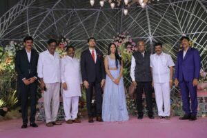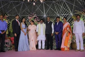 మాజీ ఎంపి పొంగులేటి శ్రీనివాస్ రెడ్డి కుమార్తె మ్యారేజ్ రిసెప్షన్ హైదరాబాద్ లో జరిగింది. వధూవరులు సప్నిరెడ్డి, అర్జున్ రెడ్డిలను పలువురు రాజకీయ ప్రముఖులు ఆశ్వీరధించారు. మంత్రి కేటీఆర్ సతీసతమేతంగా కార్యక్రమానికి హాజరయ్యారు. టీఆర్ఎస్ తో పాటు కాంగ్రెస్, బీజేపీ నాయకులు రిసెప్షన్ లో పాల్గొన్నారు. అంతకు ముందు ఖమ్మంలో కార్యకర్తలు,అభిమానుల కోసం పొంగులేటి భారీ రిసెప్షన్ ను ఏర్పాటు చేశారు. ఇందులో దాదాపు మూడు లక్షల మంది పాల్గొన్నారు.  పొంగులేటి ఈ రిసెప్షన్ కోసం 250 కోట్ల ఖర్చు చేసినట్లు ప్రచారం జరుగుతోంది.